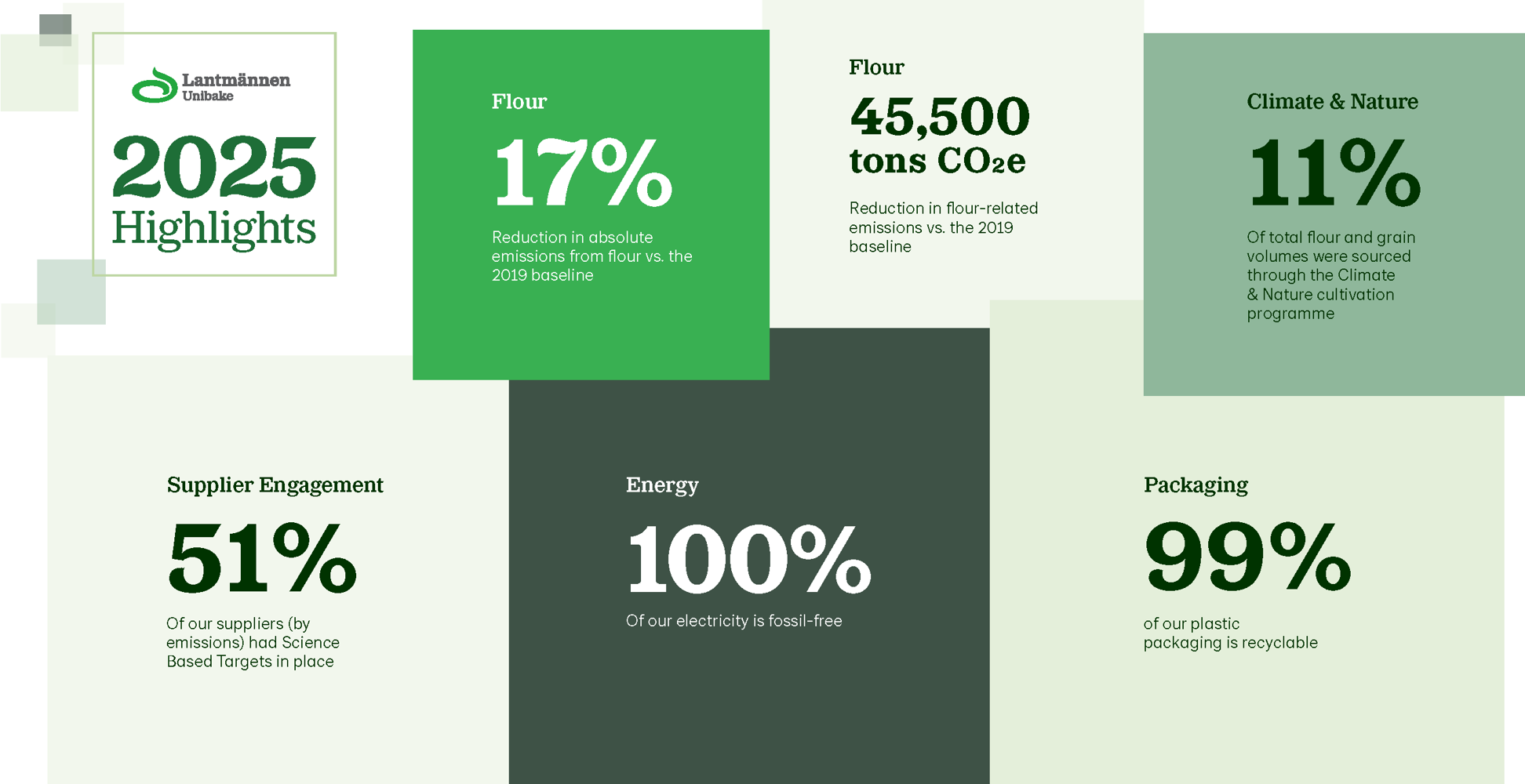 At the same time, operational improvements across our bakeries continue to deliver results. Combined Scope 1 and 2 emissions are down 39% since 2019, supported by energy efficiency initiatives and the transition to 100% fossil-free electricity across all sites.